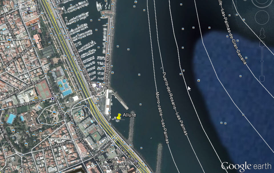 Siehst Du den kleinen Hafen im Süden vom grossen? Da sind wir, fast alle Katamarane. Und wenn Du in Google Earth gehst und Las Palmas findest, dann wirst Du auch den Steg sehen. Dort sitzen wir mit unseren internationalen ARC-Freunden.