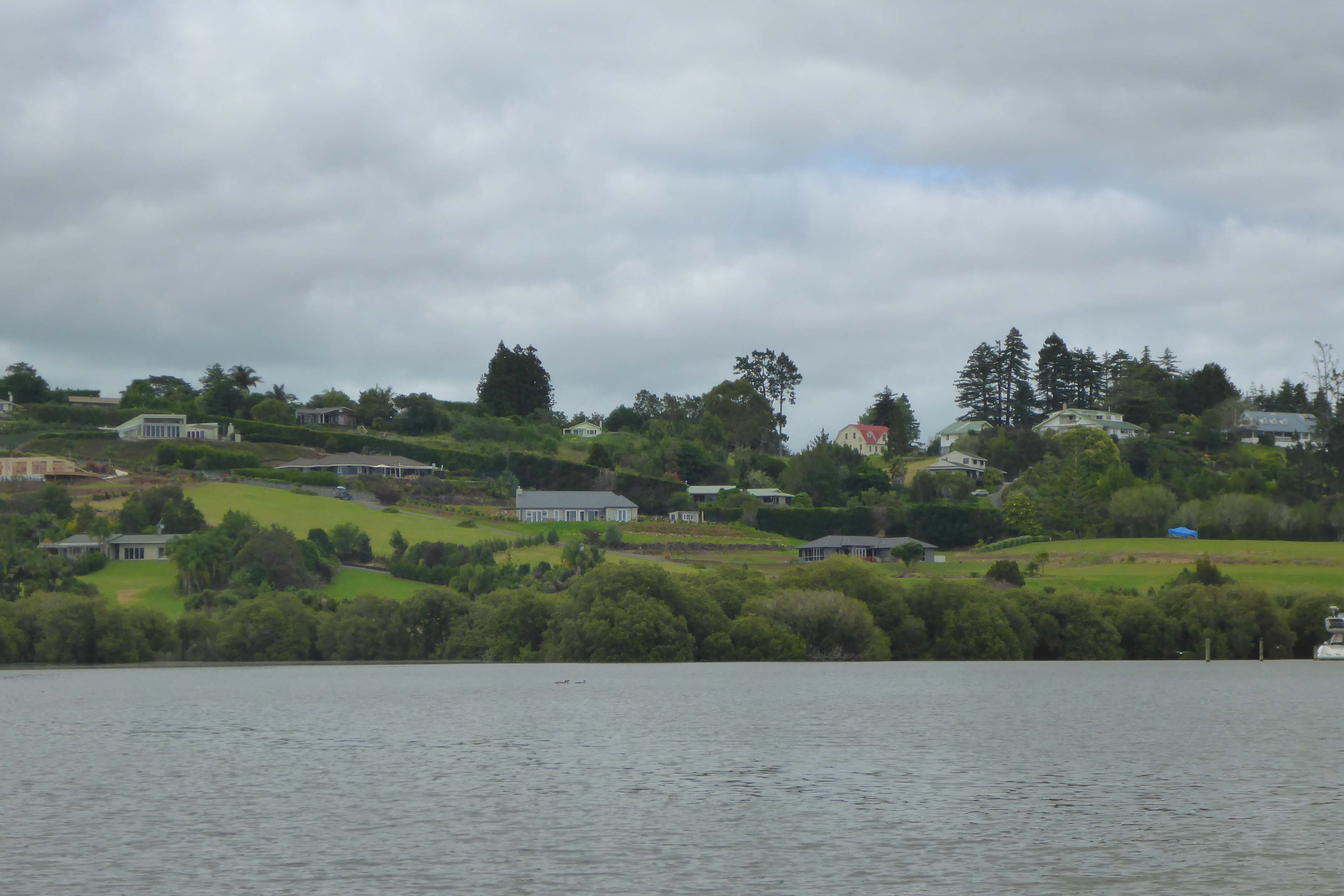 Auf 6m haben wir geankert, in den Tidengewässer hier müssen wir mit 2 – 3m Schwankung rechnen. Am nächsten Morgen legten wir los Richtung das Städtchen Kerikeri. Der Anfang war etwas ruppig, trotz Schutz der nahen Küste hatte es doch recht Wind. Kaum im Flusslauf, wurde es ruhig und wir tuckerten entlang der nahen Ufer. Wir hatten Zeit die super Häuser anzuschauen. Für Schweizer alles Millionenhäuser. Und die die Gärten, oder besser der Umschwung war nicht nur sehr gepflegt, sondern richtig künstlerisch gestaltet. Später schauten wir für Preise von Häusern. Ein Einfaches ist schon für CHF 200‘000 zu haben, teurere mit 2000m2 Umschwung und das Haus >300m2 kosten 1 Mio inkl. Swimming Pool.
