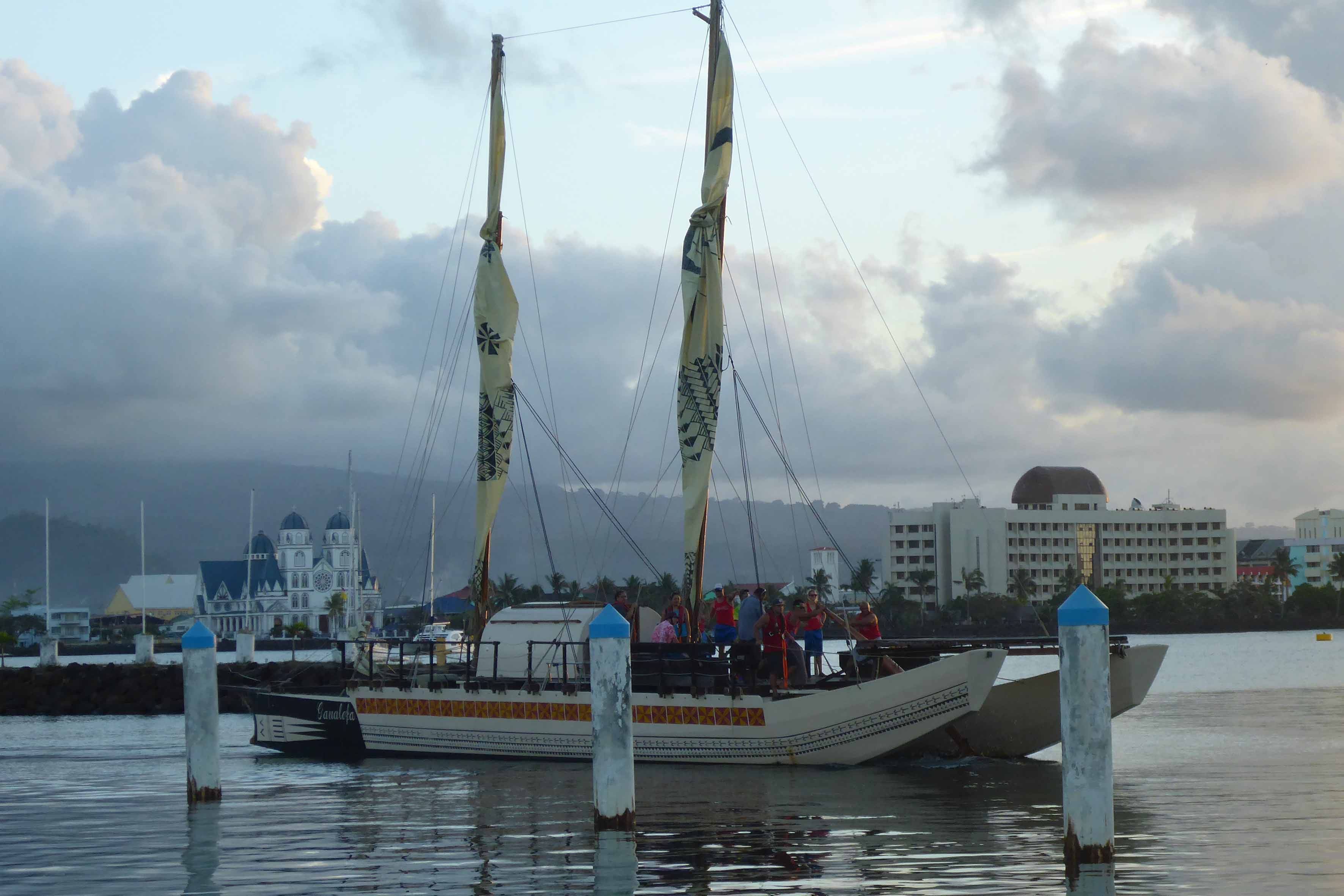 Auch hier gibt es die typischen Polynesischen Katamarane. Am Abend geht man hier, wie bei uns, einfach zum Spass Polynesienkatsegeln. Hier sind wir gerade im Hafen der Hauptstadt Apia. Nach Upolu, Apia, Segelten wir weiter auf die nächste Insel von W-Samoa, Savai’i. Eine Nacht verbrachten wir in Lelepa. Dann ging es weiter an die West-Spitze von Savai’i. Dort blieben wir für ein paar Tage in der Bucht von Asau.