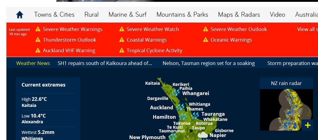Die Internetseite von MetService dem Wetterdienst von NZ sieht es grimmig aus. Der Weltuntergang steht uns kurz bevor.