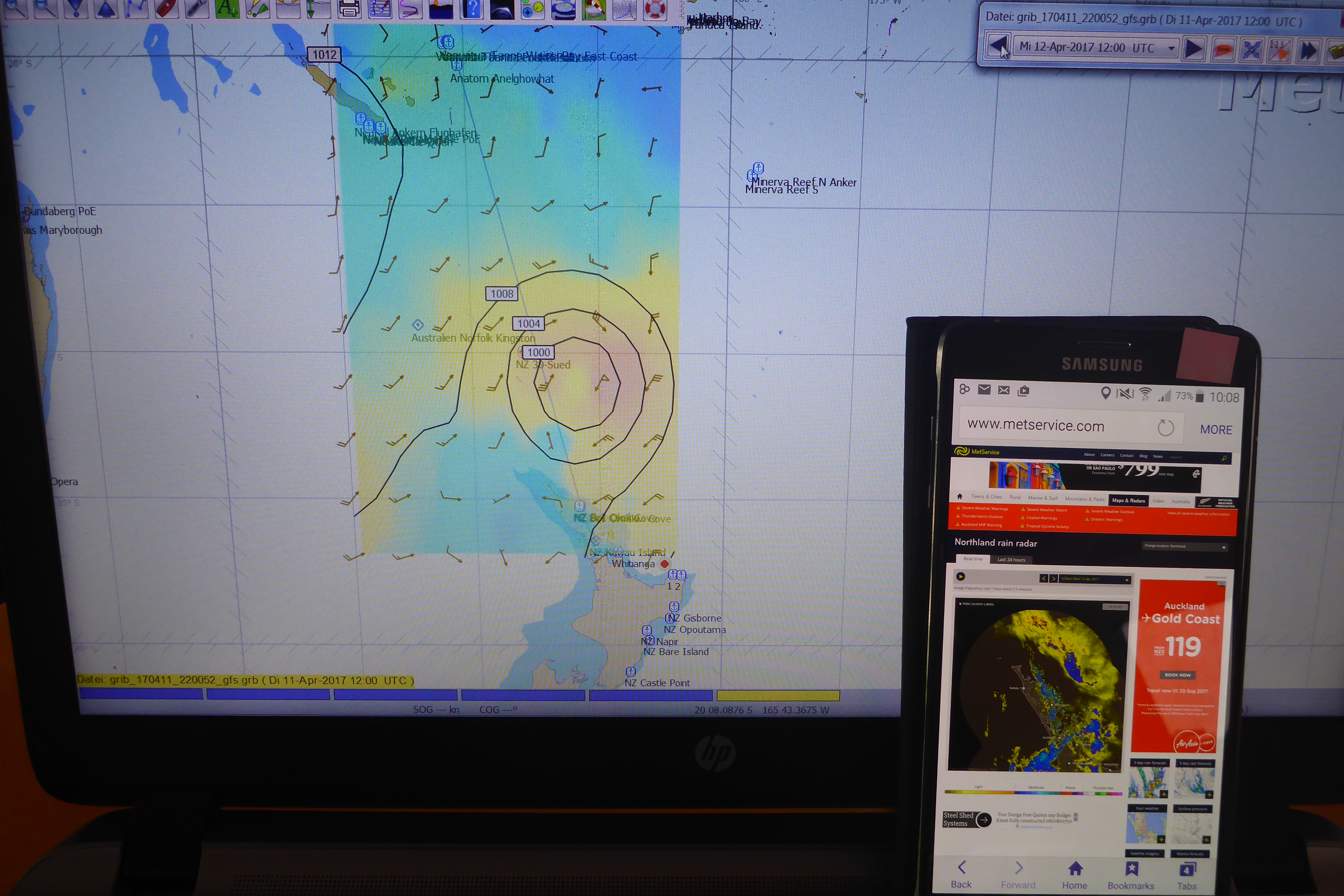 Und so bemühten wir das Internet um die Lage wirklich beurteilen zu können. Unter anderen ist die Internetseite von Bob MCDavitt eine gute Internetseite. Er gilt unter Seglern im Pazifik als Wetterguru. Auf seiner Seite erklärt er regelmässig was gerade so passiert im Pazifik und was kommen könnte. Besonders jetzt im April, wenn alle daran denken NZ zu verlassen und in den Pazifik zu segeln ist seine Seite die wohl meistbesuchte Internetseite.