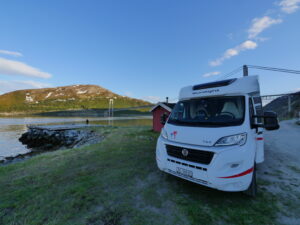 Endlich, Edith sieht eine Person auf der Veranda in einem Haus in einer Ansammlung von Häuschen. Anhalten und hineilen. Niemand da. Ich will gerade umkehren, als eine freundliche Stimme Norwegisch mit mir plaudert. Die pausbackige freundliche Frau spricht aber auch perfekt englisch. Ja ja sie wohne hier das ganze Jahr. Ja ja es sei schon ruhig im Winter, besonders wenn die Strasse zugeschneit sei. Nein sie liebe das. Und ja die Strasse ende dort um die nächste Ecke, weiter nur für Personen in einem kleinen Boot. Ich bedanke mich und kehre zum Camper zurück.